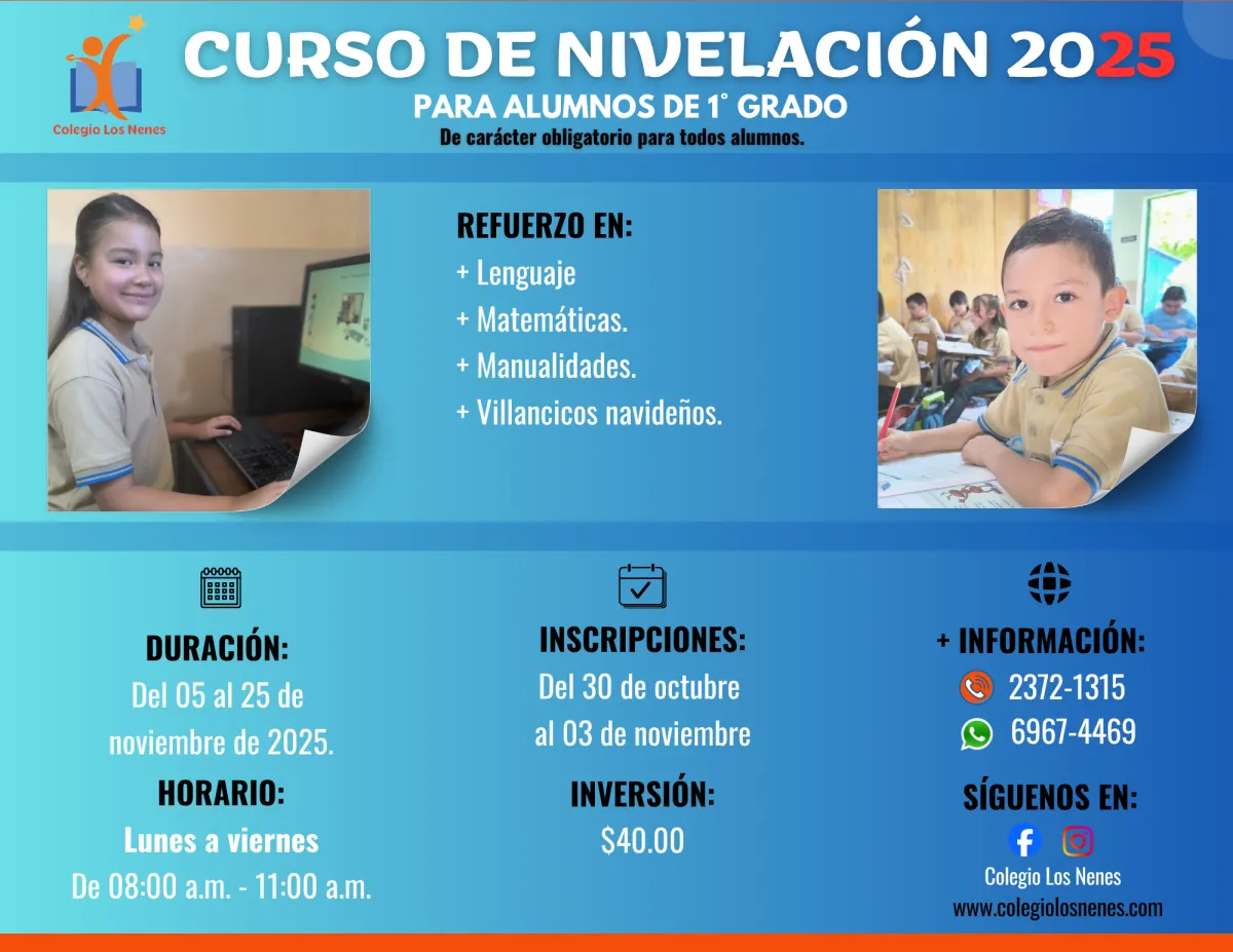 Ofrecemos desde Educación Inicial (3 años), Parvularia (4 a 6 años) y Primaria (1.º a 6.º grado), con grupos reducidos y atención personalizada para cada estudiante.